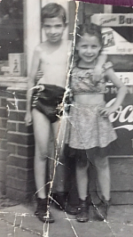 Shia and Miriam Bakalinsky in front of their parents Beryl and Dora’s grocery at 543 Logan Ave